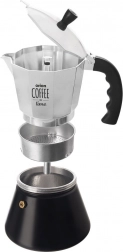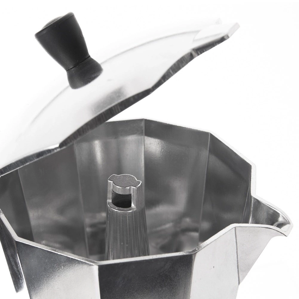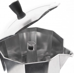 Ova elegantna moka posuda priprema do 9 šalica ukusnog espressa (otprilike 50 ml po šalici) punog okusa i arome. Izdržljivo aluminijsko tijelo osigurava brz prijenos topline, a ergonomska ručka sigurno i udobno točenje. Zahvaljujući sigurnosnom ventilu kuhanje kave je pouzdano i bez brige.