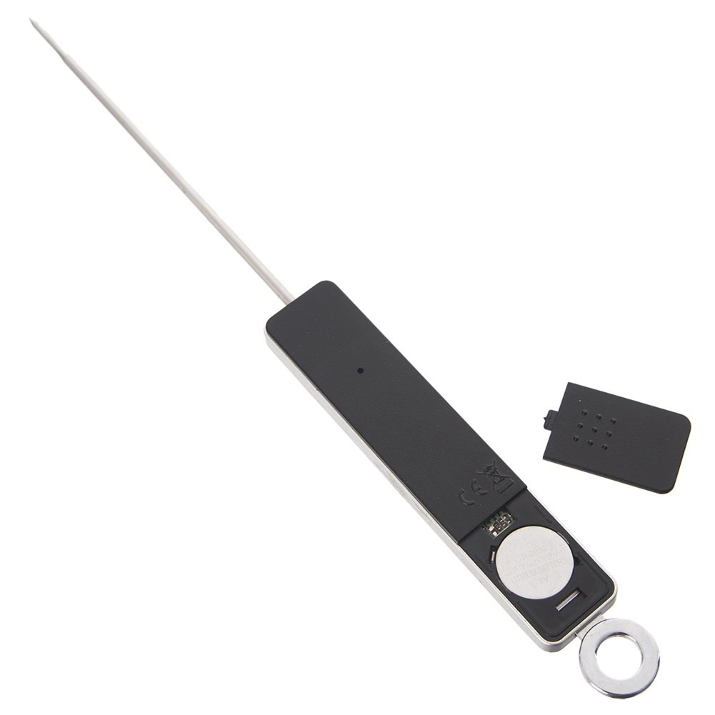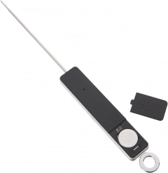 Izdržljiva izrada kombinira nehrđajući čelik i čvrsto plastično kućište u crnoj boji. Praktična zaštitna kapica sonde olakšava sigurno odlaganje i putovanje, a očica omogućuje vješanje u kuhinji. Napajanje osigurava 1× baterija CR2032 (nije uključena u pakiranje).