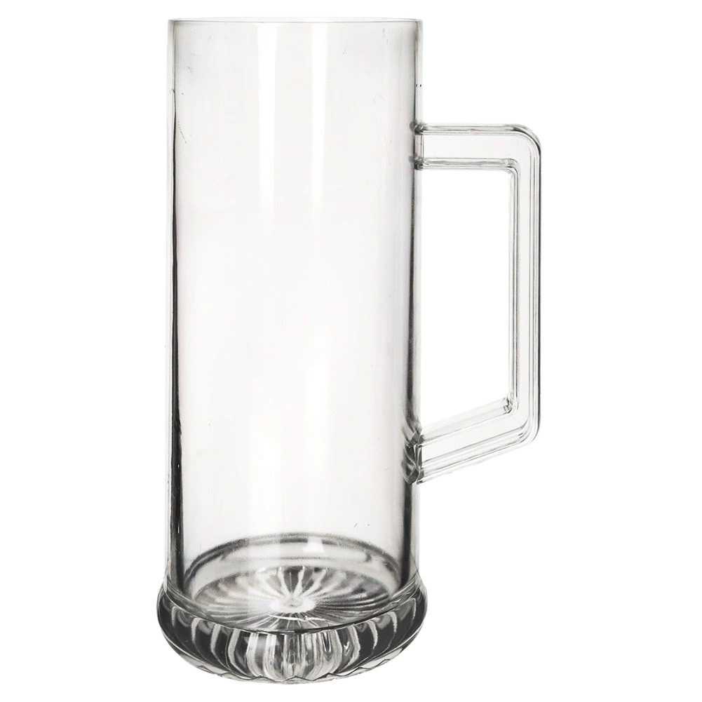 Praktična plastična pivska krigla zapremine 620 ml odličan je izbor za ljubitelje piva i bezalkoholnih napitaka. Izrađena od kvalitetnog prozirnog materijala koji izgledom podsjeća na staklo, ali je znatno lakši i otporan na razbijanje. Donji dio sa stiliziranim „kristalnim” ukrasom daje krigli elegantan izgled.