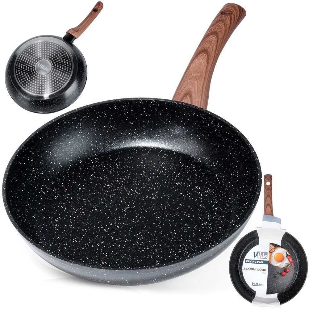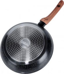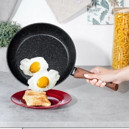 Omiljena tava u modernoj kombinaciji crne i drva postat će praktičan pomoćnik za prženje i pirjanje. Izdržljivo aluminijsko tijelo s kvalitetnim granitnim neljepljivim slojem osigurava lako odvajanje jela i jednostavno čišćenje. Idealna za meso, povrće, jaja i brzo podgrijavanje hrane.