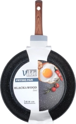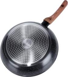 Čvrsta tava od lijevanog aluminija s izdržljivom neprianjajućom granitnom površinskom obradom odlikuje se izvrsnom vodljivošću topline i lakim čišćenjem. Moderna kombinacija crne i drveta uklapa se u svaku kuhinju te osigurava udobno kuhanje, prženje i pirjanje.