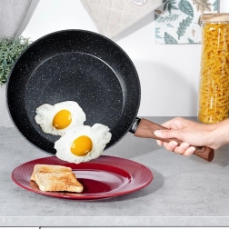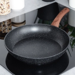 Stilna granitna tava promjera 28 cm za svakodnevno kuhanje. Zahvaljujući neprianjajućoj kamenoj površini, brzoj i ravnomjernoj raspodjeli topline te ergonomskoj ručki s imitacijom drva pripremit ćete zdrava jela s minimumom masnoće na svim vrstama štednjaka, uključujući indukciju.