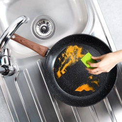 Kamenasta struktura osigurava izvrsno otpuštanje hrane i omogućuje kuhanje s minimalno masnoće, bez lijepljenja i uz brzo čišćenje.