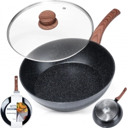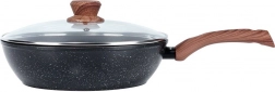 Ova duboka aluminijska tava s granitnim neljepljivim premazom idealna je za svakodnevno kuhanje: prženje, sotiranje i pirjanje. Elegantna kombinacija crne boje i drvenog izgleda savršeno se uklapa u modernu kuhinju, dok stakleni poklopac omogućuje kontrolu nad jelom i zadržava toplinu i vlagu.