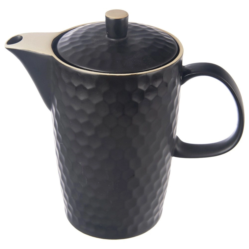 Otkrijte praktičan i dizajnerski čajnik TEA TIME od izdržljive kamenine u mat crnoj izvedbi. Teksturirana površina inspirirana pčelinjim saćem daje vašem stolu moderan štih, dok poklopac s ručkom pomaže dulje zadržati napitke toplima i štititi ih od nečistoća.