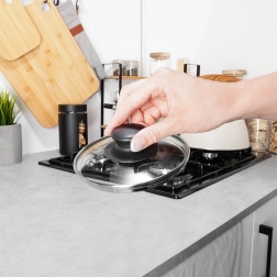 Ovaj univerzalni stakleni poklop savršeno pristaje loncima, tavama i kaserolama promjera 12 cm. Prozirno, toplinski otporno staklo s inox okvirom jamči izdržljivost i jednostavno održavanje, dok ergonomsko ručko pruža siguran hvat. Zahvaljujući blago ispupčenom obliku, potiče bolju cirkulaciju vrućeg zraka.