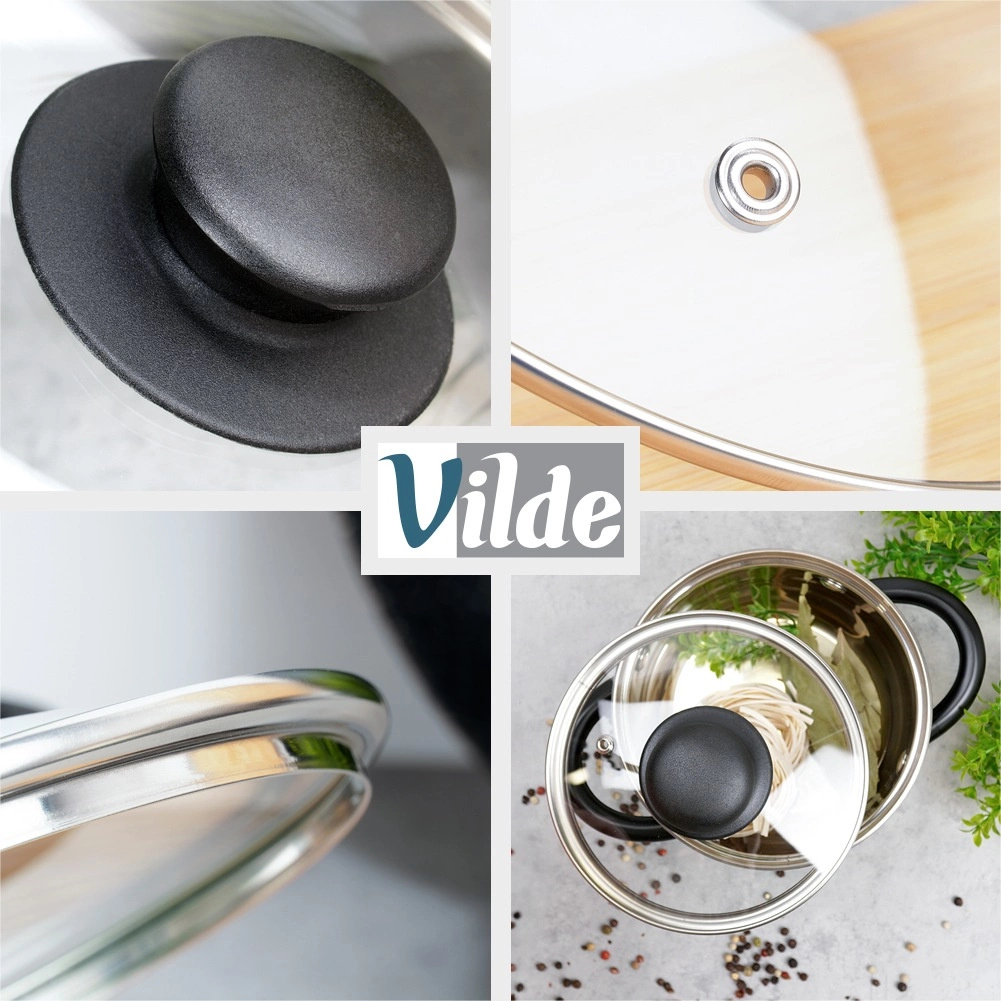 Poklop ubrzava kuhanje i prženje, sprječava prskanje vode i masnoće te pomaže održati temperaturu jela nakon kuhanja. Ventilacijski otvor osigurava siguran izlazak pare i stabilan tlak ispod poklopca.