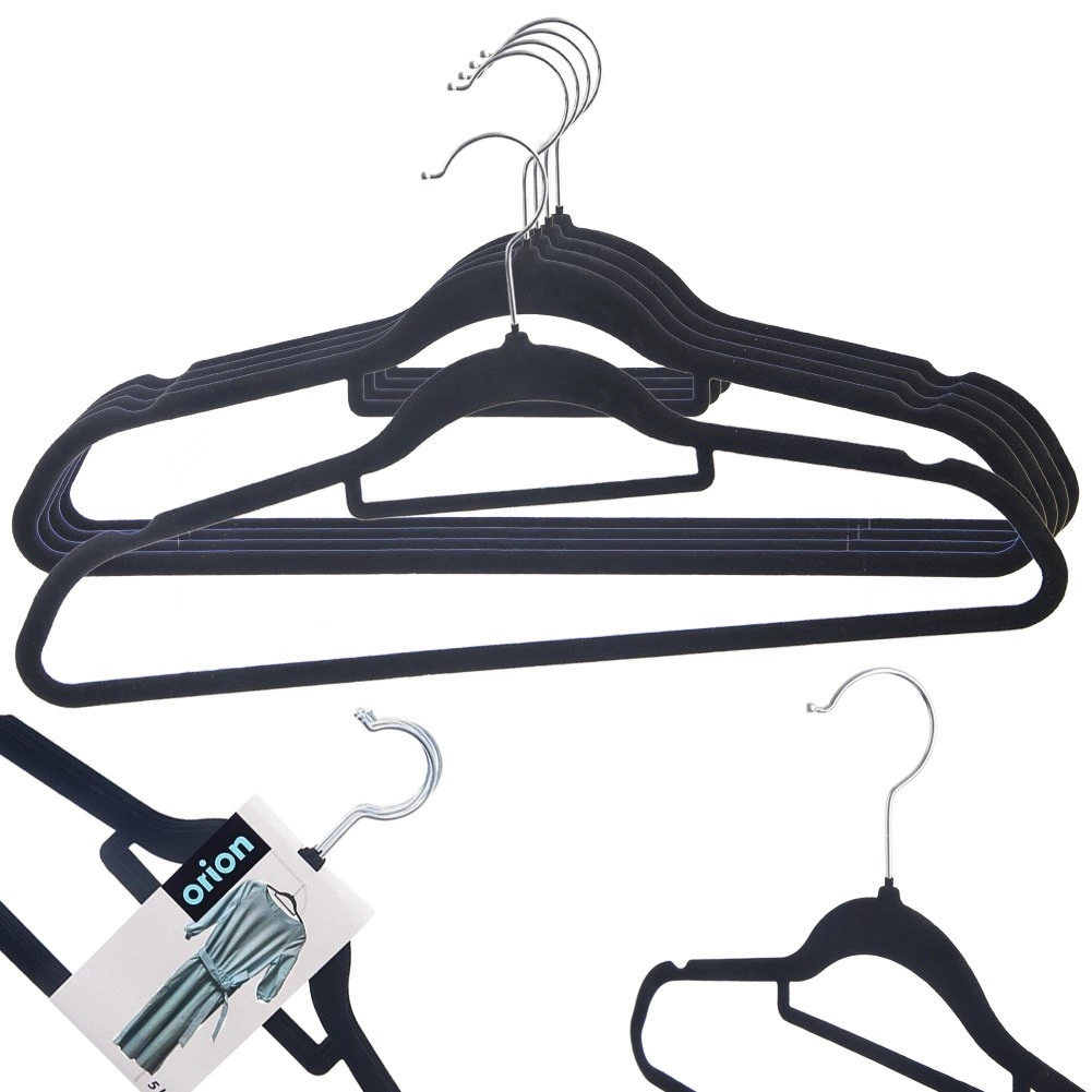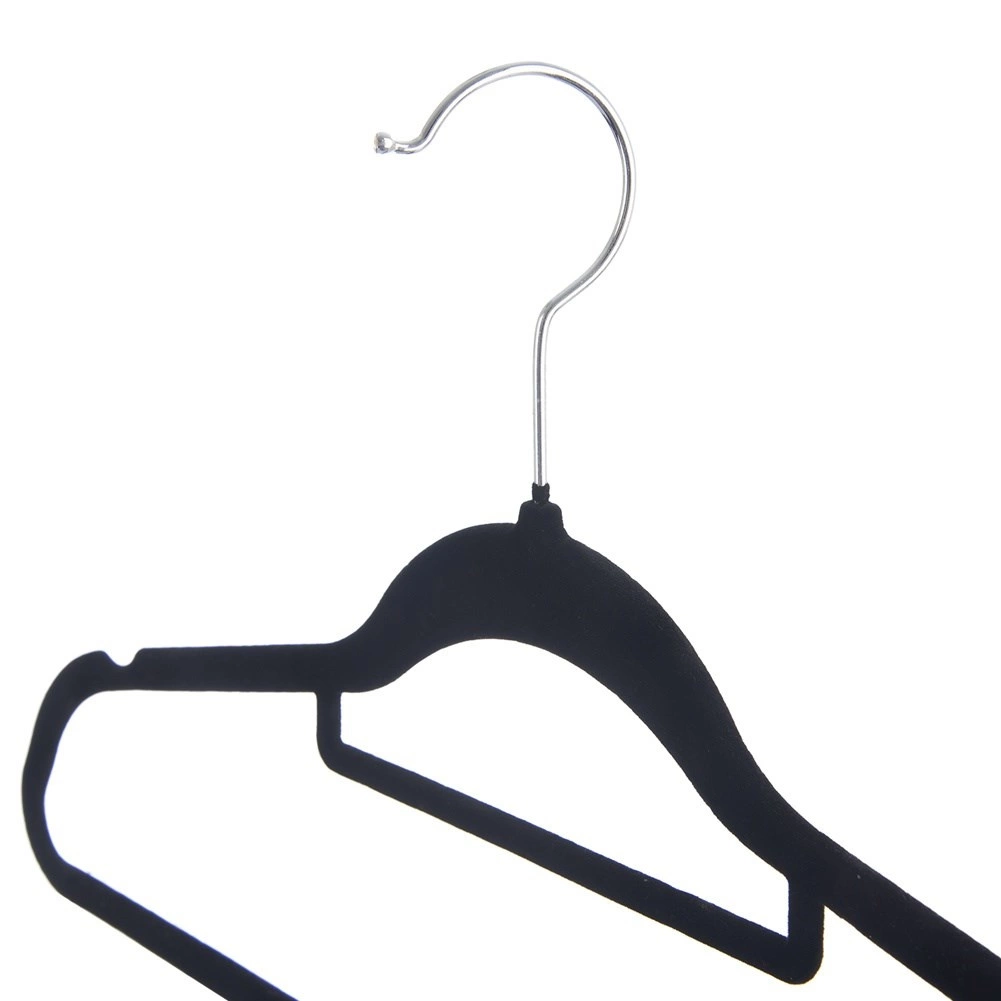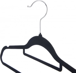Organizirajte svoju odjeću s stilom i bez gužvanja. Vješalice s nježnom velurskom površinom sigurno drže i klizave materijale, štite tkanine, a zahvaljujući okretnoj kuku lako ih smjestite u bilo koji prostor. Elegantna crna izvedba pristaje svakom ormaru.