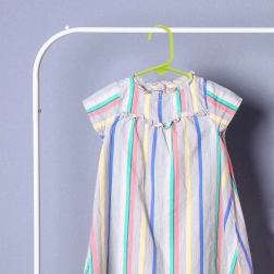 Set od 5 dječjih vješalica idealan je za majice, dukserice, haljine na naramenice i lagane hlače. Vješalice imaju zaobljene rubove za nježno rukovanje dječjom odjećom i utore za haljine s tankim naramenicama. Donja prečka pomaže objesiti šalove ili tanke hlače.