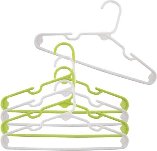 Izrađene od kvalitetne plastike u bijeloj i svijetlozelenoj boji, koja se ne deformira i odolijeva svakodnevnoj upotrebi. Zahvaljujući kompaktnim dimenzijama 29,5 × 16,5 × 0,5 cm, vješalice su točno prilagođene dječjim veličinama i pomažu održati red i organizaciju u ormaru.