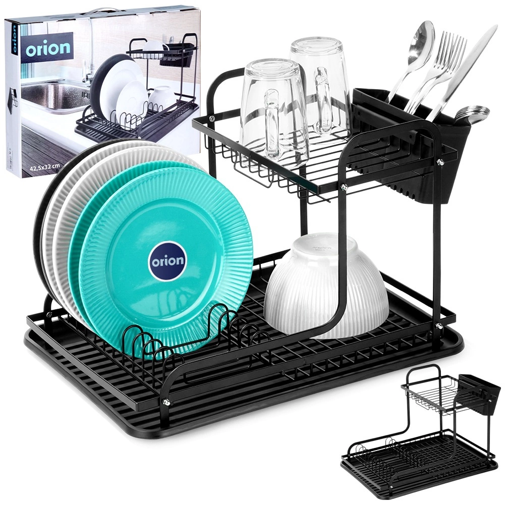 Robusna metalna konstrukcija u mat crnoj boji djeluje moderno i pristaje interijerima u loft stilu kao i klasičnim kuhinjama. Izvadivi, dvokomorni pribornik omogućuje pregledno sortiranje pribora i ubrzava njegovo brzo sušenje. Glatke površine osiguravaju jednostavno čišćenje i dug vijek trajanja.