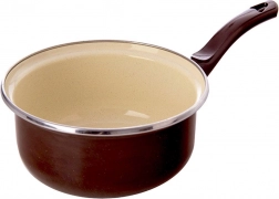 Stilskom lončiću BROWN spajaju se tradicionalan izgled i moderna funkcionalnost. Tijelo od kvalitetnog čelika s emajliranom površinom osigurava dug vijek trajanja, jednostavno čišćenje i siguran kontakt s hranom, pogodno i za alergičare. Krem unutrašnjost i smeđa vanjska površina upotpunjeni su rubom od nehrđajućeg čelika za čisto lijevanje.