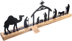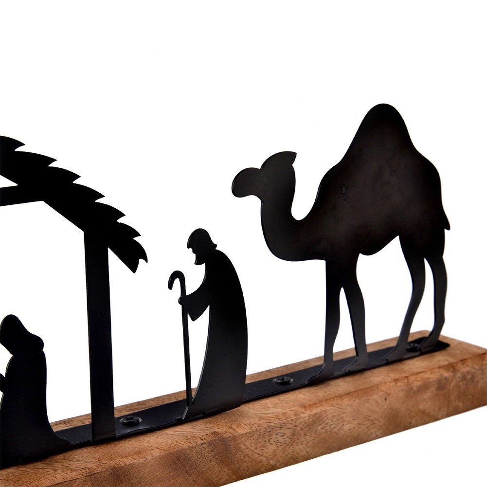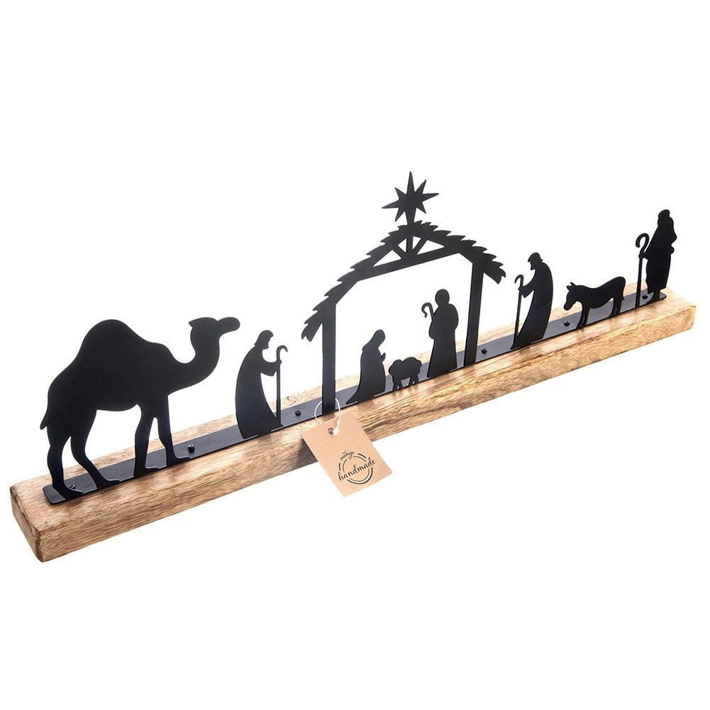 Ove pomno izrađene jaslice oduševljavaju čistim linijama metalnih silueta i prirodnim izgledom drveta manga. Zahvaljujući kompaktnim dimenzijama 51 × 5 × 18 cm odlično odgovaraju za kaminsku policu, prozorsku dasku, komodu ili kao stolnu dekoraciju. Minimalistički dizajn lijepo pristaje modernom i tradicionalnom interijeru te naglašava božićnu atmosferu.