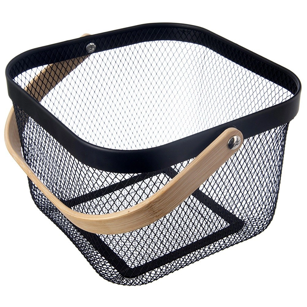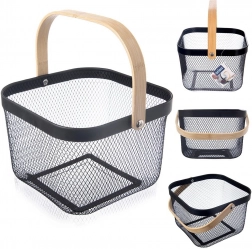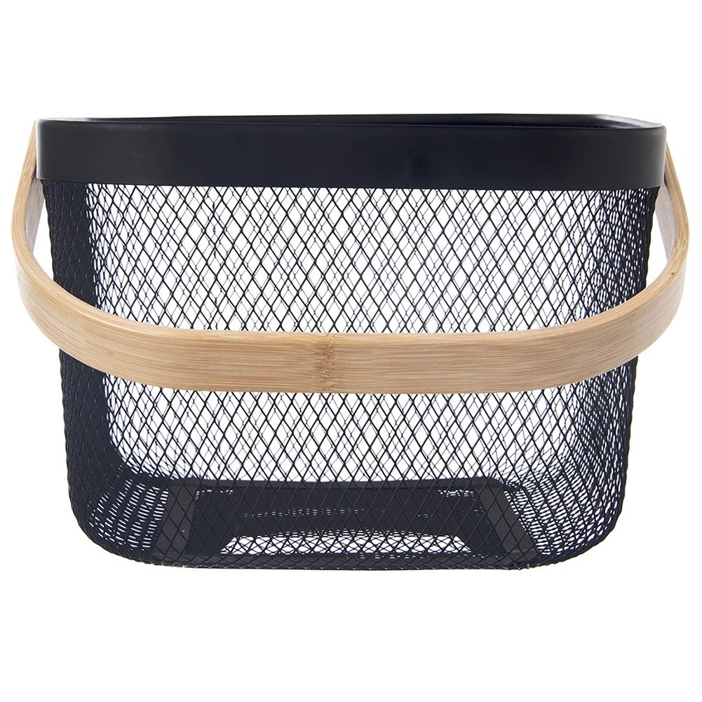 Ova praktična košara spaja izdržljivu metalnu mrežu s udobnom bambusovom drškom, pa se lako prenosi i istovremeno održava red u svakoj prostoriji. Zahvaljujući prozračnoj izvedbi savršena je za čuvanje voća i povrća, ali i za pregledno odlaganje ručnika, kozmetike i sitnica.