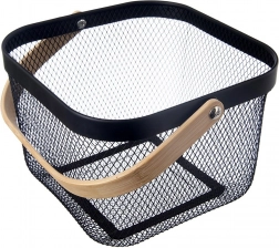 Elegantni crni dizajn uklapa se u moderne i skandinavske interijere te služi kao praktična dekoracija. Vanjske dimenzije košare su 27 × 24,5 × 17,5 cm, bez ručke 24,5 × 24,5 cm – idealna veličina za kuhinjsku radnu plohu, kupaonski ormarić ili policu u dnevnom boravku.