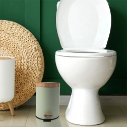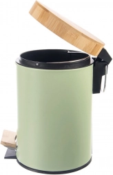 Održavajte dom urednim i stilskim uz kompaktnu metalnu kantu za otpad GREENISH 3 l. Tijelo u mat pastelnom zelenilu i prirodni bambusni detalji stvaraju elegantan dodatak modernim interijerima. Zahvaljujući stabilnoj bazi i tihom radu poklopca, ugodna je za svakodnevnu uporabu.
