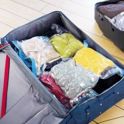 Vakuumske vreće smanjuju volumen odjeće do 70 %, pa u kofer i ormar stane više, a sve ostaje uredno posloženo.