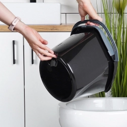 Kvalitetna plastika u crnoj boji sa sivom ručkom i cjedilom osigurava dugi vijek trajanja i jednostavno nošenje.