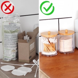 Prirodni bambusov poklopac s udobnim hvatištem štiti kozmetičke blazinice od prašine i vlage te istovremeno upotpunjuje moderan izgled vaše kupaonice.