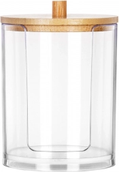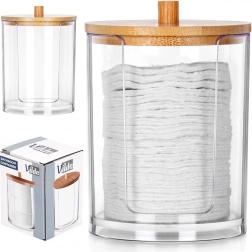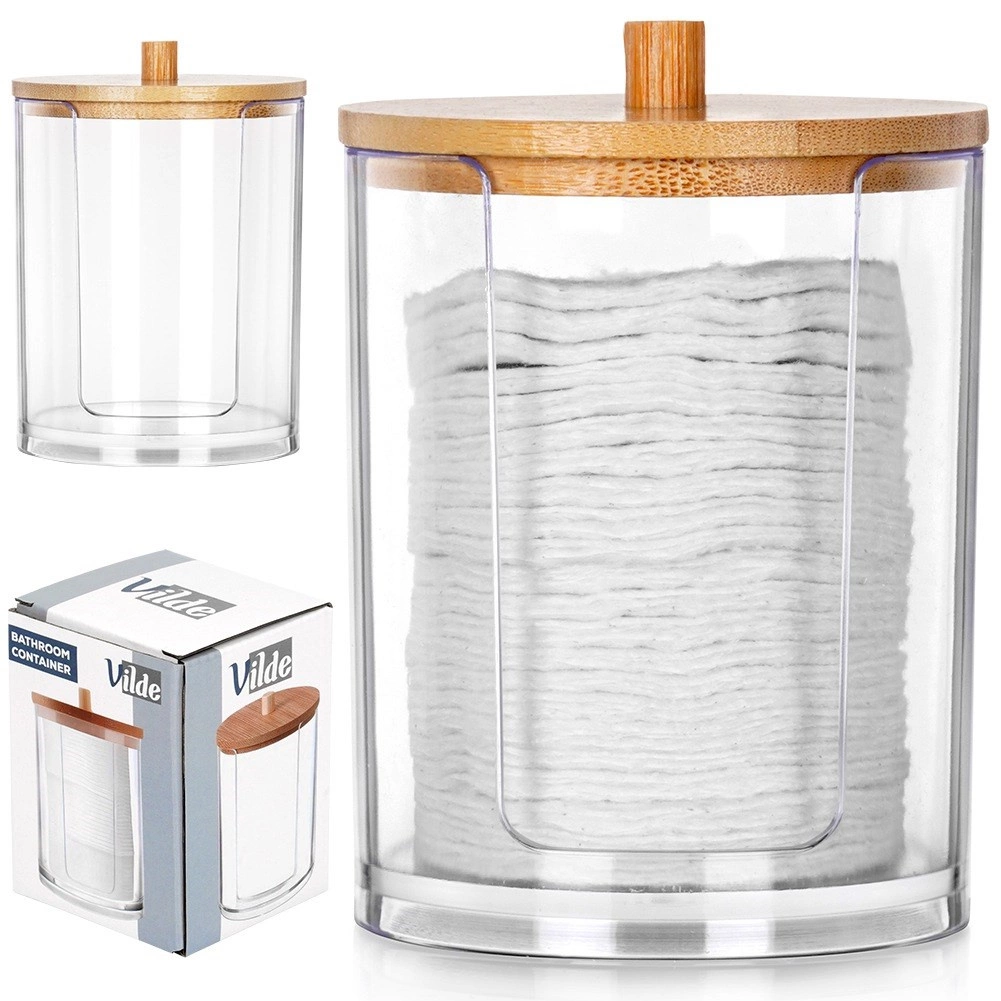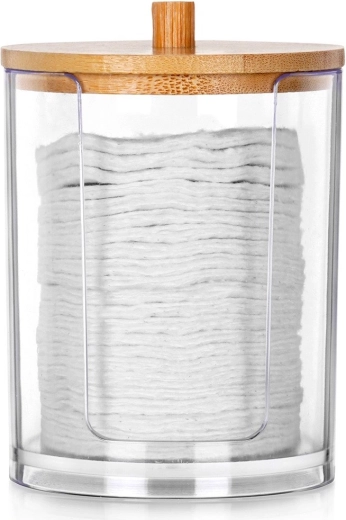 Ova kompaktna doza promjera 7 cm i visine 10 cm izrađena je od izdržljivog, prozirnog akrila, tako da uvijek vidite koliko blazinica je preostalo. Bambusov poklopac s udobnim hvatištem štiti sadržaj od prašine i daje prirodan, elegantan izgled.