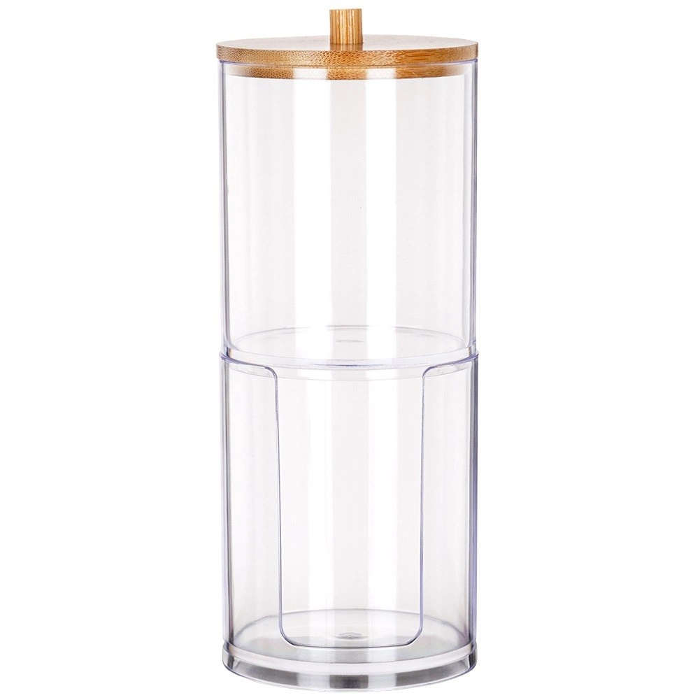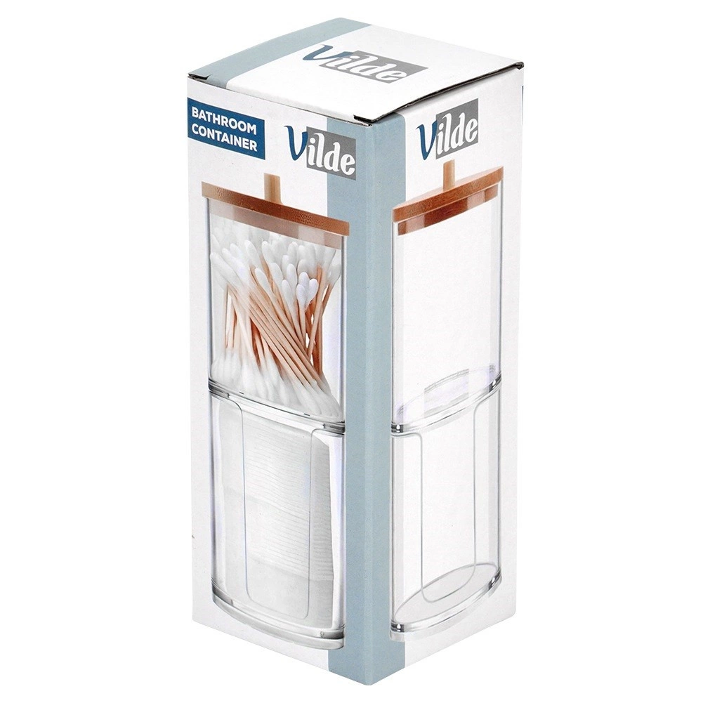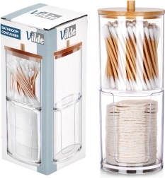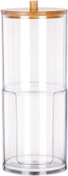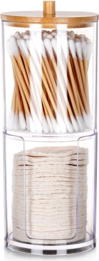 Elegantan i funkcionalan dodatak za svaku kupaonicu. Dva odvojena pretinca od prozirnog akrila osiguravaju higijensko i pregledno odlaganje vatiranih štapića i okruglih blazinica. Gornji dio prekriven je bambuskim poklopcem s prihvatom, a donji odjeljak ima prednji otvor za jednostavno doziranje.