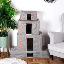 Praktična spremna vreća zapremnine 68 l za jastuke, poplune, posteljinu i odjeću. Štiti od prašine, vlage i moljaca, ima čvrstu tekstilnu konstrukciju sa stabilizacijskim okvirom, dvostruki patentni zatvarač za lak pristup, prozirni prozorčić za brzi pregled i bočne ručke za udobno prenošenje. Idealna za ormar i ispod kreveta.