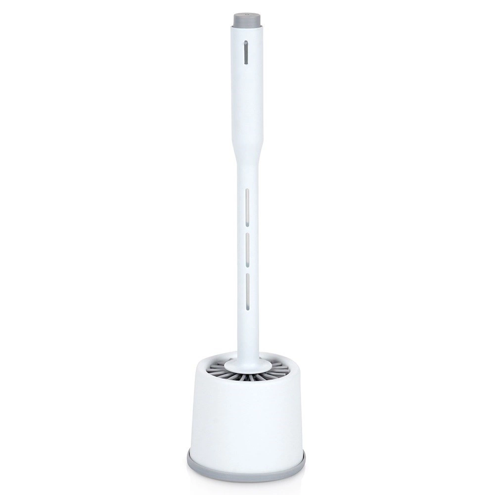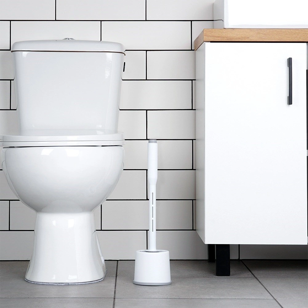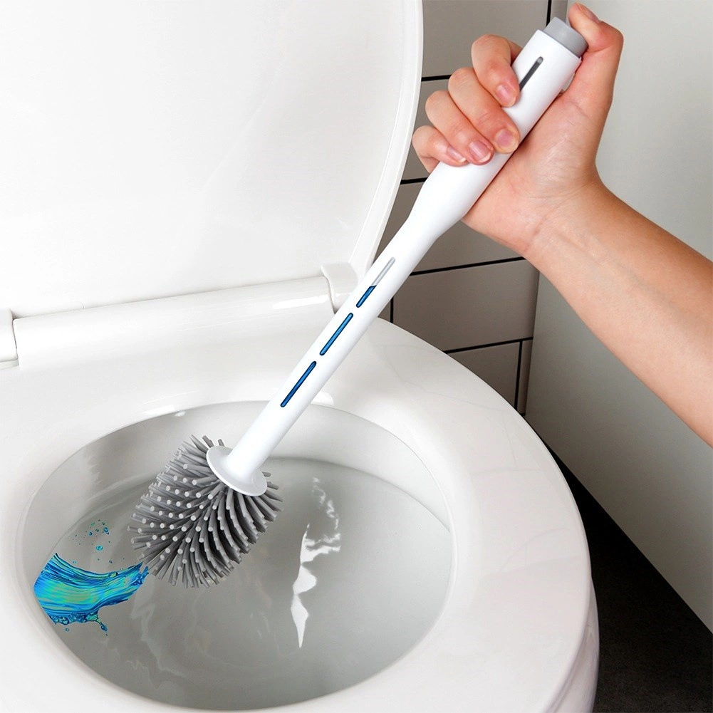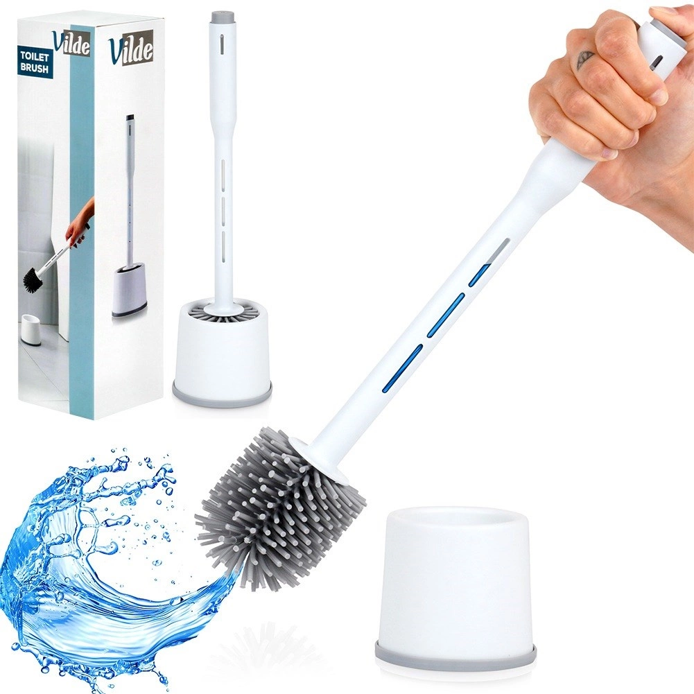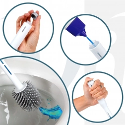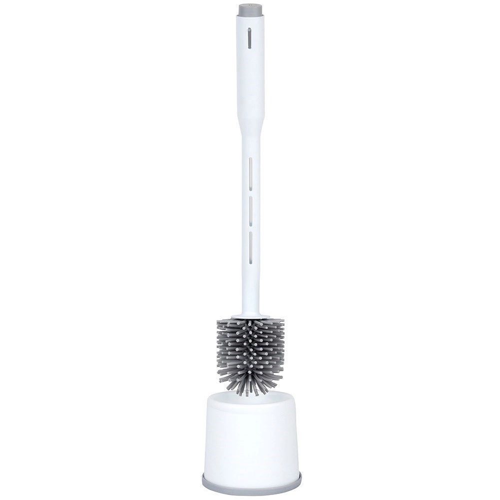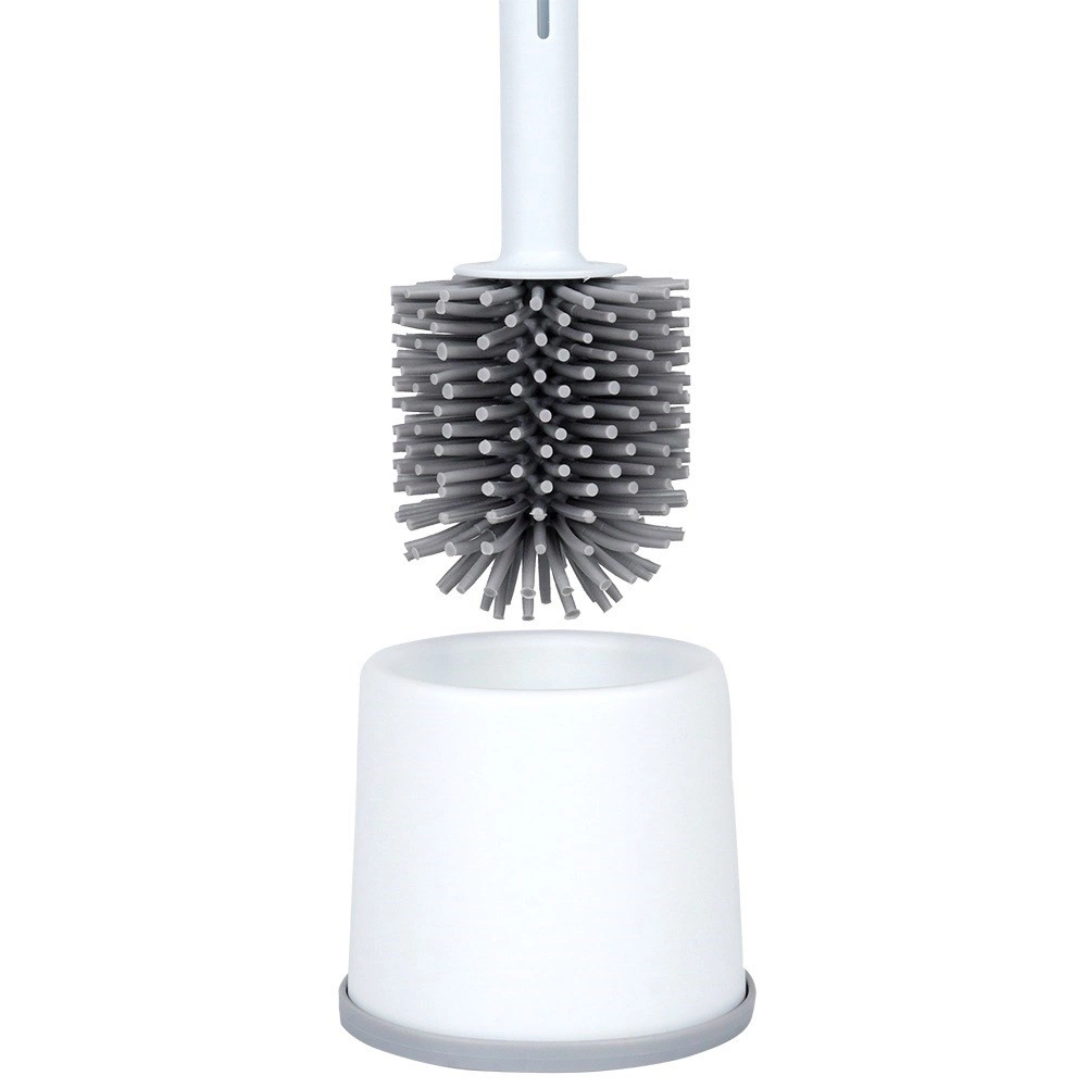 Gusta silikonska vlakna učinkovito uklanjaju nečistoće i kamenac, bez ogrebotina na površini školjke. Prozračan stalak s protukliznim dnom drži četku uspravno, ubrzava sušenje i osigurava maksimalnu higijenu te estetski izgled i u maloj kupaonici.
