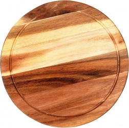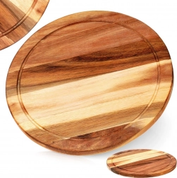 Kvalitetna drvena daska od prirodnog akacijevog drva spaja funkcionalnost i estetiku. Okrugli oblik s dubokim kanalićem zadržava sokove i mrvice, pa radna površina ostaje čista. Debljina od 1,5 cm osigurava stabilnost i dug vijek trajanja.
