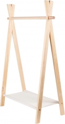 Ova samostojeća vješalica u tipi dizajnu prilagođena je djeci – lako dostupna, potiče samostalnost i drži njihovu odjeću uredno na jednom mjestu. Prirodno borovo drvo ističe se bezvremenskim skandinavskim izgledom, dok donja lanena polica pruža dodatni prostor za cipele, ruksake ili igračke.