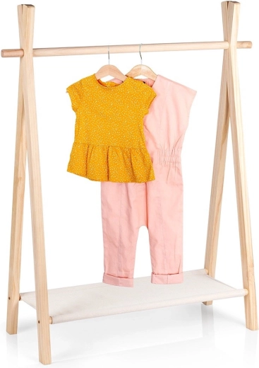 Zahvaljujući čvrstoj i stabilnoj konstrukciji pogodna je za dječju sobu i trgovine dječjom odjećom. Kompaktne dimenzije 80,5 × 30 × 100 cm štede prostor, a istovremeno nude dovoljno mjesta za svakodnevne odjevne kombinacije.