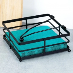 Stalak za salvete MISTY spaja moderan industrijski izgled sa svakodnevnom funkcionalnošću. Zahvaljujući uteženoj ruci s pritiskom salvete ostaju uredno posložene i ne odnosi ih vjetar čak ni na balkonu, terasi ili u vrtu. Mat crni praškasti premaz štiti površinu i daje elegantan izgled koji se uklapa u svaki interijer.