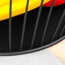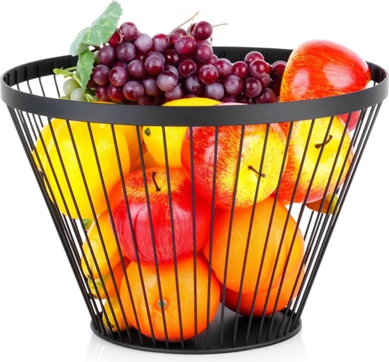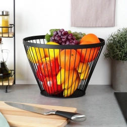 Metalna košara za voće Misty idealan je izbor za svaku kuhinju i blagovaonicu. Izrađena je od kvalitetnog metala s praškasto lakiranom crnom površinom, koja je izdržljiva i lako se održava. Visoke, proširene stijenke primaju obilnu zalihu voća ili povrća, a zahvaljujući prozračnom žičanom obliku sadržaj dulje ostaje svjež.