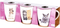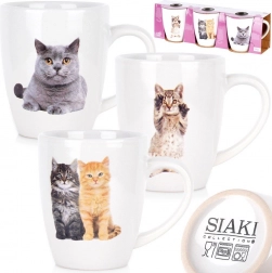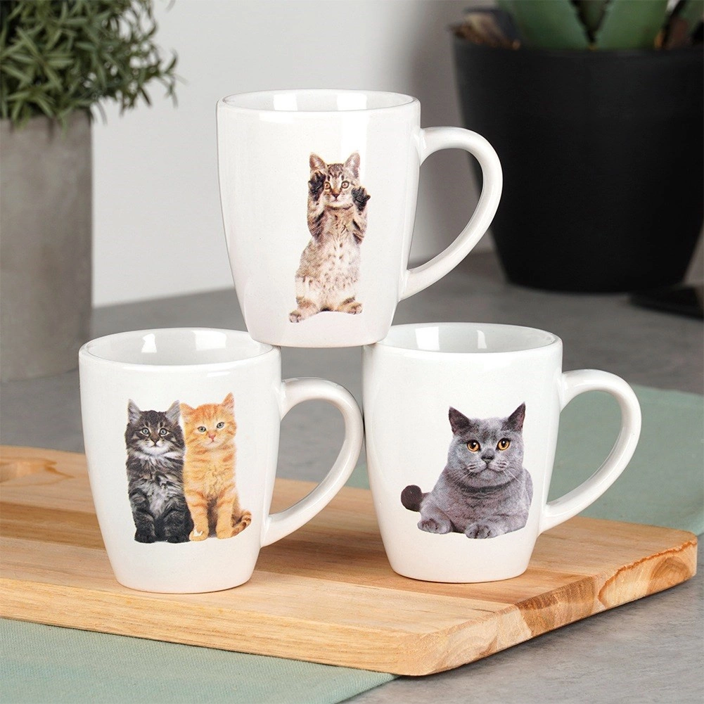 Otkrijte elegantan set od 3 keramičke šalice zapremnine 220 ml, koje oduševljavaju realističnim tiskom mačaka i sjajnom bijelom površinom. Klasičan oblik s velikim uhom pruža ugodno držanje i svakodnevnu praktičnost.