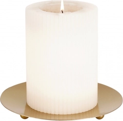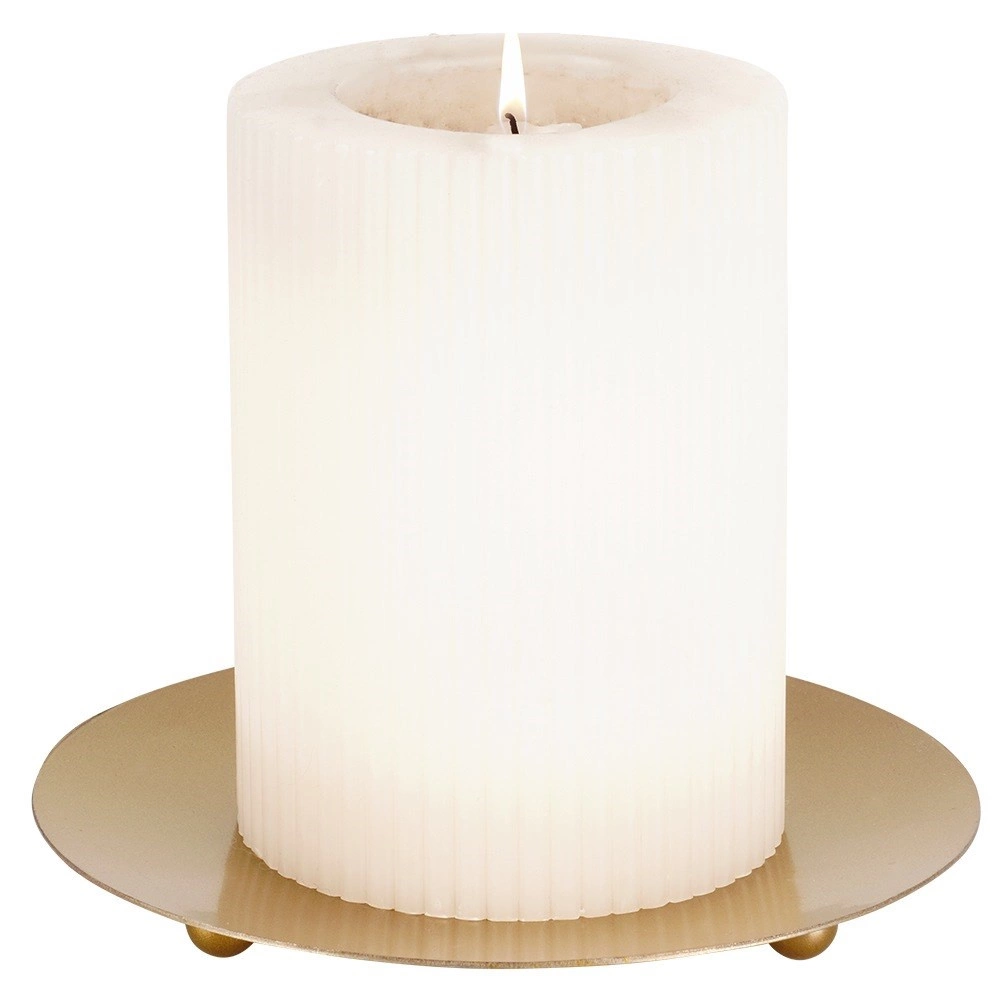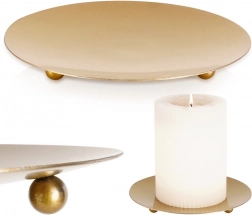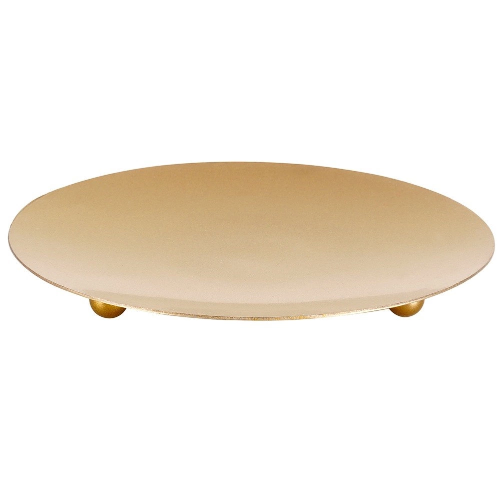 Ova stilska zlatna metalna podloga za svijeće ističe se čistim, minimalističkim izgledom i kvalitetnom izradom. Mat površina u zlatnom tonu lako se kombinira s različitim stilovima interijera – od modernog do skandinavskog. Zahvaljujući praktičnim nožicama djeluje prozračno, a istodobno sigurno stoji na mjestu.