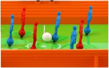 Doživite emocije prave utakmice u udobnosti doma. Ovaj stolni nogomet koristi opružno upravljanje igračima – dovoljno je saviti figuricu u pravom smjeru i poslati lopticu u napad. Vratara je moguće aktivno upravljati, a iznad tribine nalazi se ručni pokazivač rezultata, pa rezultat uvijek imate pod kontrolom.