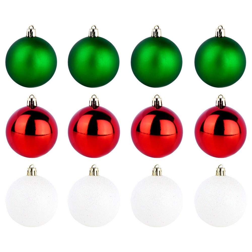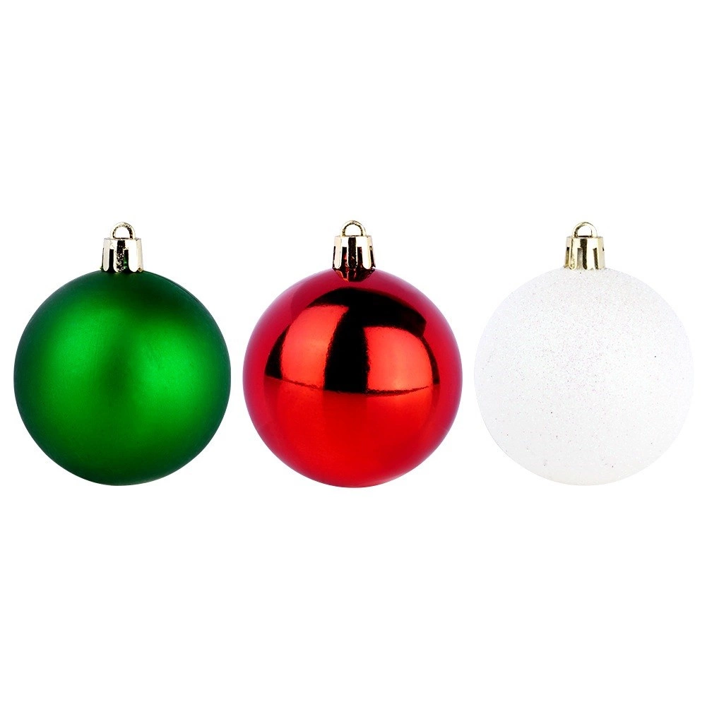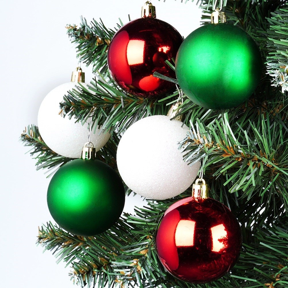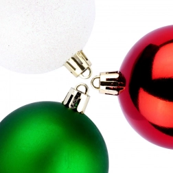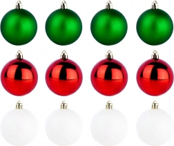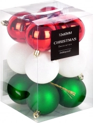 Stilizirani set od 12 božićnih kuglica u crvenoj, zelenoj i bijeloj boji, promjera 6 cm. Kuglice su nerazbijive, imaju sjajne, mat i svjetlucave završne obrade, a zahvaljujući izdržljivoj plastici sigurne su za domove s djecom i kućnim ljubimcima. Idealne za božićno drvce, vijence i girlande za stvaranje čarobne blagdanske atmosfere.
