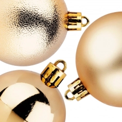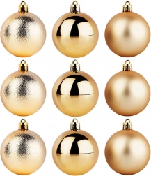 Ovaj univerzalni zlatni set izvrstan je izbor za ukrašavanje božićnog drvca, vijenaca, girlandi i blagdanskih aranžmana. Kombinacija sjaja, mata i blistave teksture stvara efektan kontrast i dubinu, zahvaljujući čemu će vaš ukras doći do izražaja u svakom interijeru.