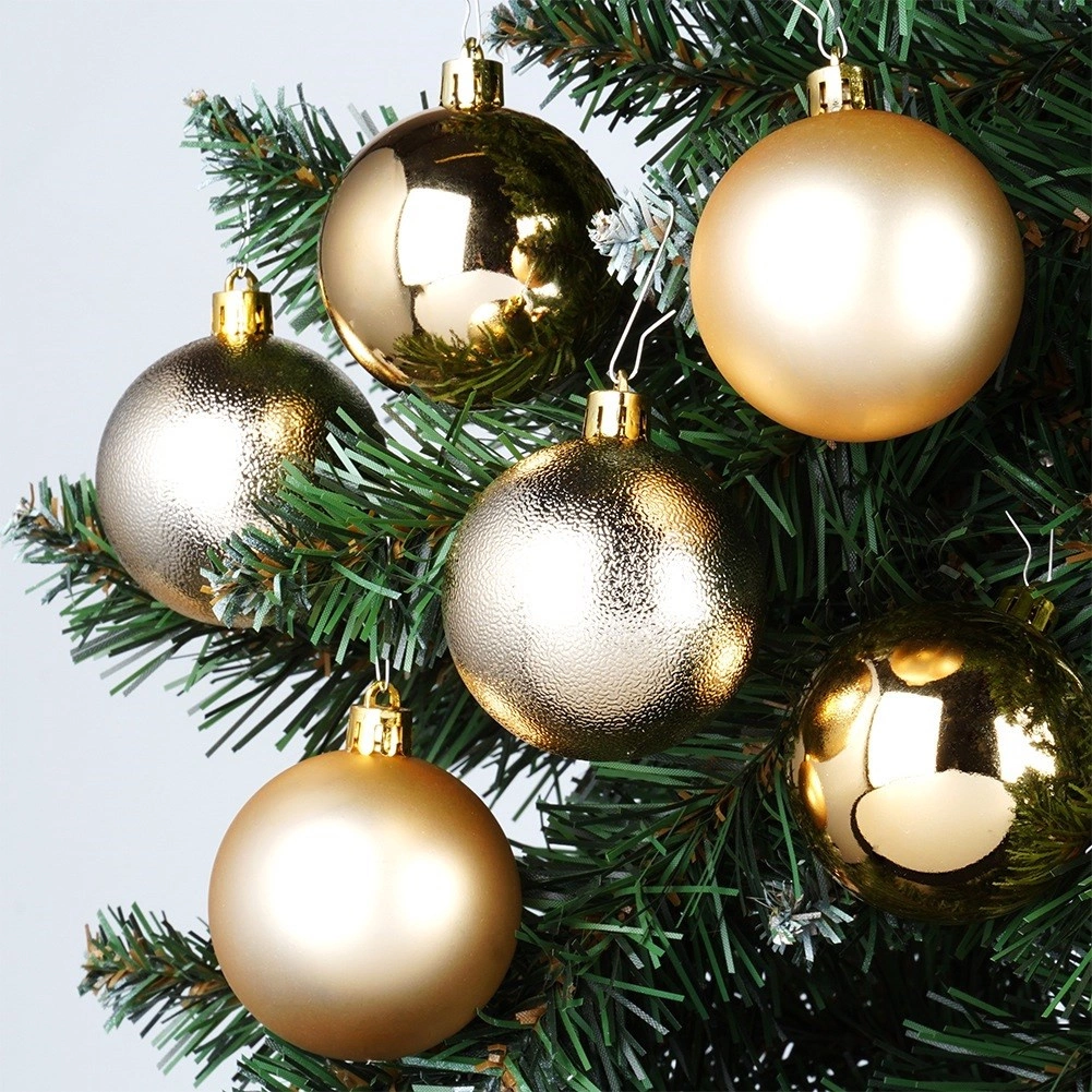 Kuglice su izrađene od izdržljivog nerazbijivog materijala koji izgledom podsjeća na staklo, ali je znatno sigurniji i trajniji. Zlatna nijansa daje dekoracijama eleganciju i bezvremenski stil, pa se uklapa i u tradicionalne i u moderne blagdanske boje.
