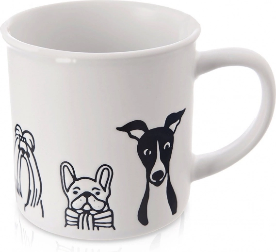 Ova prostrana šalica od kvalitetne keramike odličan je izbor za ljubitelje životinja i svakodnevne udobnosti. Bijelu podlogu upotpunjuje izražajan dekor s motivom različitih pasmina pasa, koji će uljepšati vaš stol i raspoloženje. Zahvaljujući zapremini od 500 ml uživat ćete u više omiljenog napitka bez čestog dolijevanja.