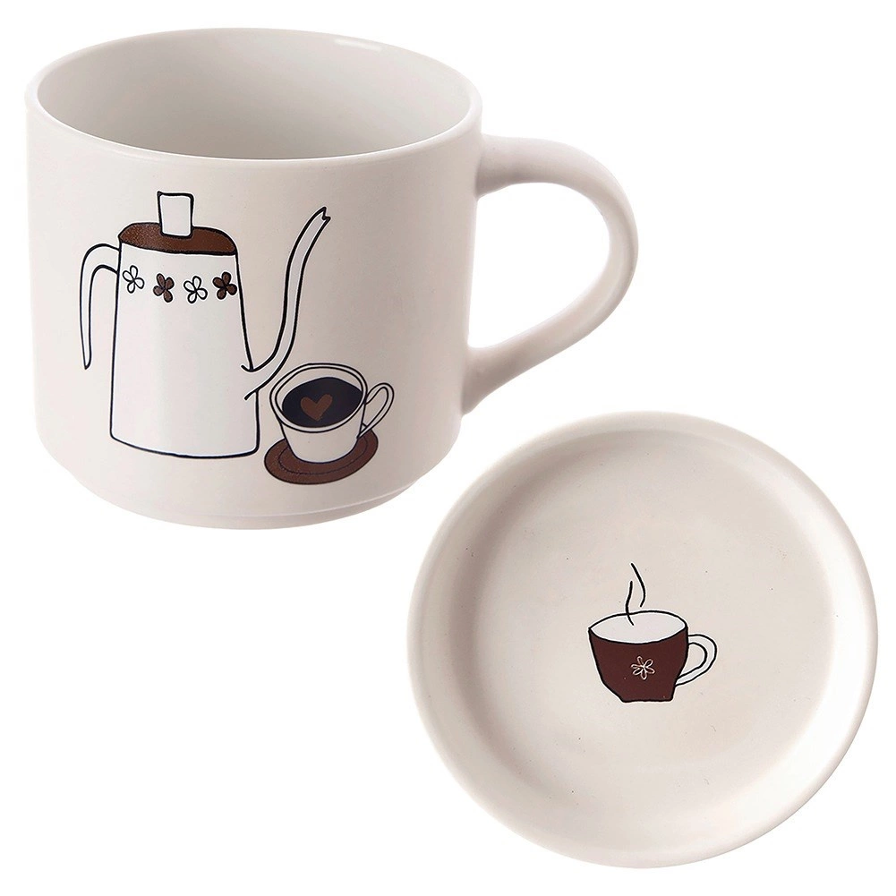 Nježna ilustracija čajnika i šalice daje stil svakom postavljanju stola, a poklopac se može koristiti i kao tanjurić.