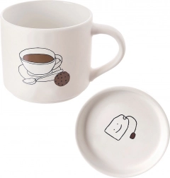 Ova elegantna šalica u bež boji s diskretnim motivom čaja odličan je izbor za svakodnevne rituale. Poklopac pomaže zadržati temperaturu napitka, a ujedno služi kao praktična posudica za odlaganje čajne vrećice nakon namakanja. Velika zapremina 420 ml omogućuje vam da uživate u više omiljenog napitka bez čestog dolijevanja.