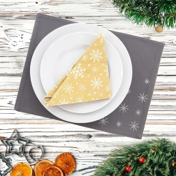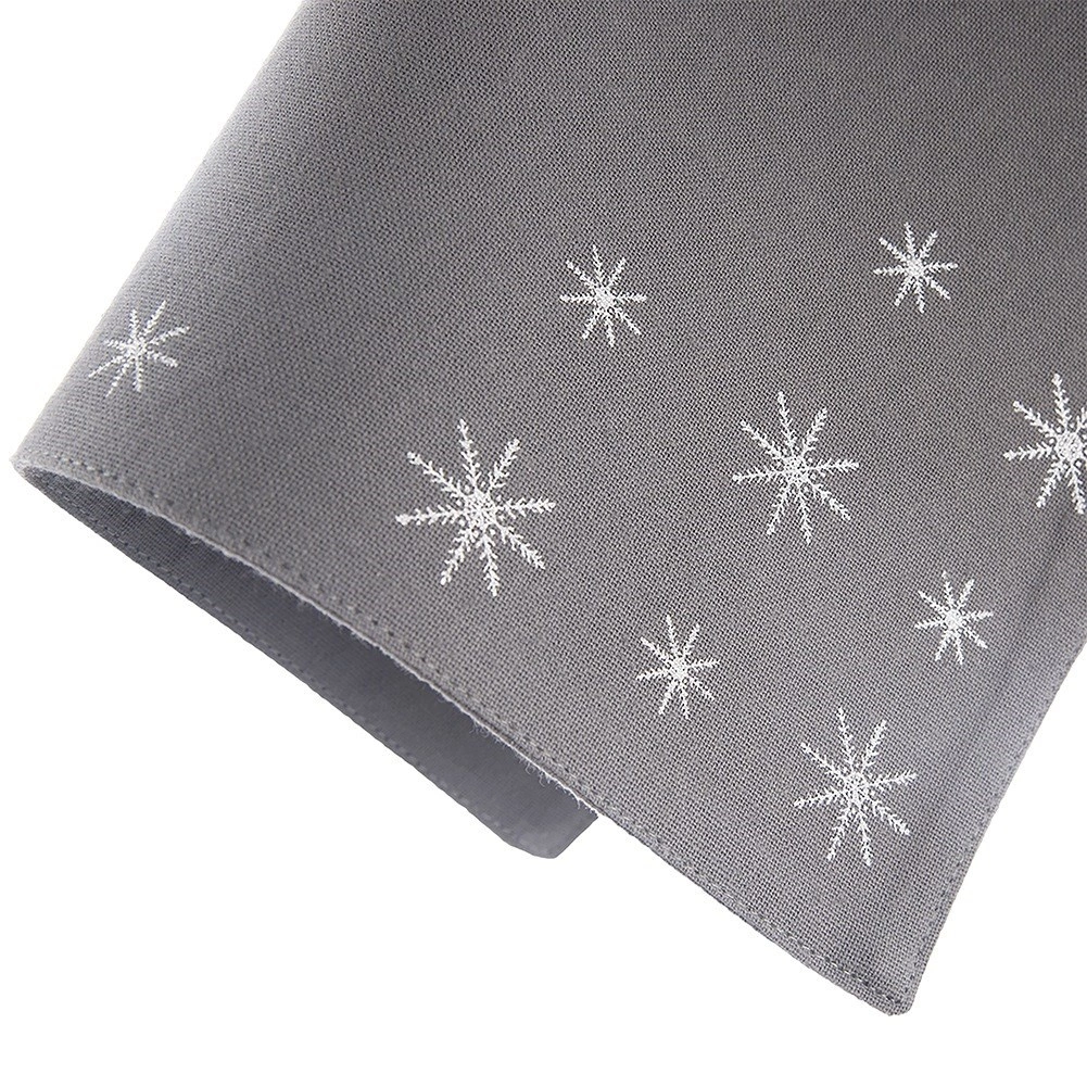 Stvorite kod kuće topao zimski i božićni ugođaj. Siva pamučna podloga s nježnim vezom snježnih pahulja istaknut će se i pri svakodnevnom i pri svečanom postavljanju stola. Kvalitetan 100% pamuk ugodan je na dodir, izdržljiv i odlično se slaže s raznim stilovima interijera.