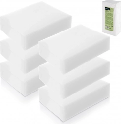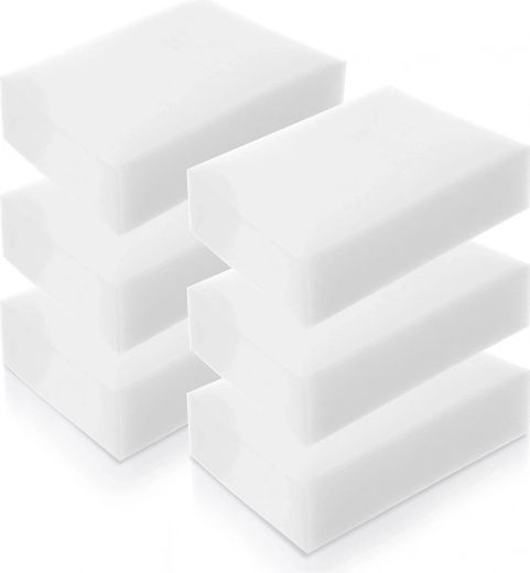 Svestrana primjena u kućanstvu: plastika (okviri, prekidači), keramika (umivaonici, pločice), nehrđajući čelik (sudoperi, uređaji), staklo i lakirane površine. Odlično rade i na zidovima – uklanjaju tragove, ogrebotine od obuće te crteže bojicama ili flomasterima. Svaka spužvica: 10 × 7 × 3 cm.