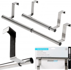 Održavajte red i uštedite prostor zahvaljujući univerzalnoj vješalici za vrata ormarića. Teleskopska konstrukcija omogućuje brzo prilagođavanje širine 25–40 cm, pa lako nosi ručnike, krpe i druge potrepštine. Sigurna i nježna prema namještaju – filcani podlošci štite površinu od ogrebotina.