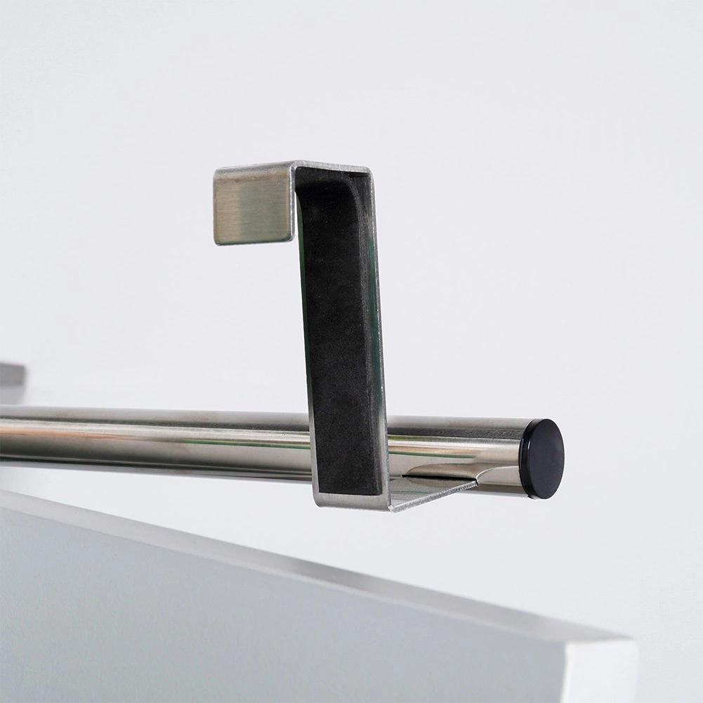 Vješalicu je dovoljno objesiti na gornji rub vratnica – bez vijaka i bez lijepljenja. Idealno za najamne prostore i renovacije bez zahvata u namještaj.