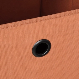 Sklopivi tekstilni koševi u neutralnim bojama s metalnim okcem za lako izvlačenje. Idealni za odjeću, igračke ili dodatke.