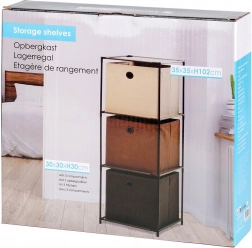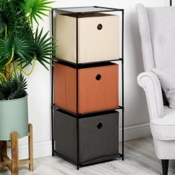 Ova uska polica dimenzija 34,5 × 34,5 × 100 cm kombinira izdržljiv crni metalni okvir i tri tekstilne kutije u bojama bež, smeđa i antracit. Svaka kutija ima metalno okce za jednostavno rukovanje i sklopiva je, pa ne zauzima mjesto kada se ne koristi. Idealno rješenje za pregledno razvrstavanje i pohranu.