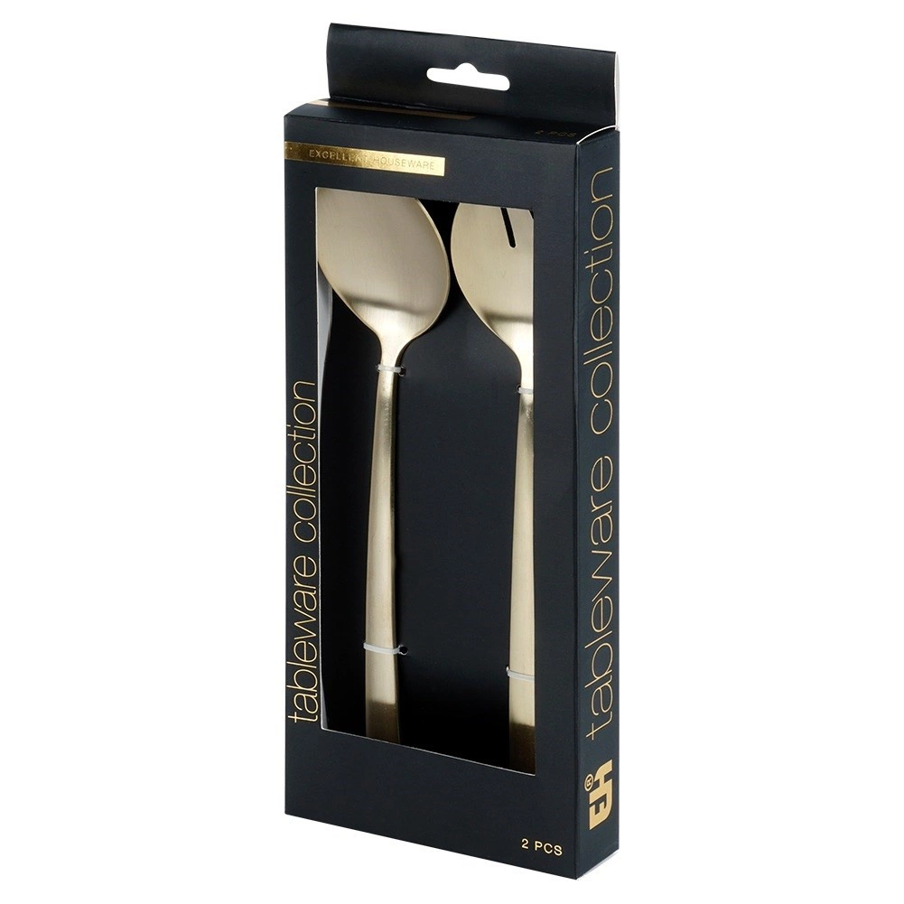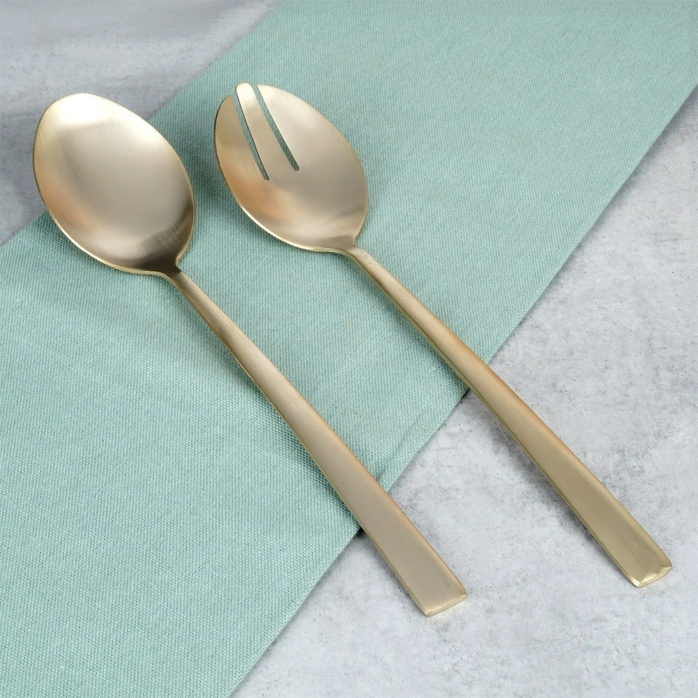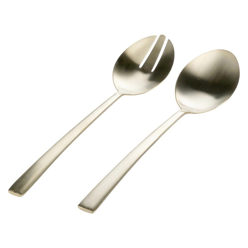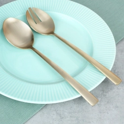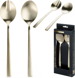 Set od 2 komada stilskih žlica za salatu u popularnoj zlatnoj izvedbi unijet će dašak elegancije na vaš stol. Satenski brušena površina spaja nježan sjaj s decentnim mat efektom i stvara moderan izgled prikladan za svaki interijer.