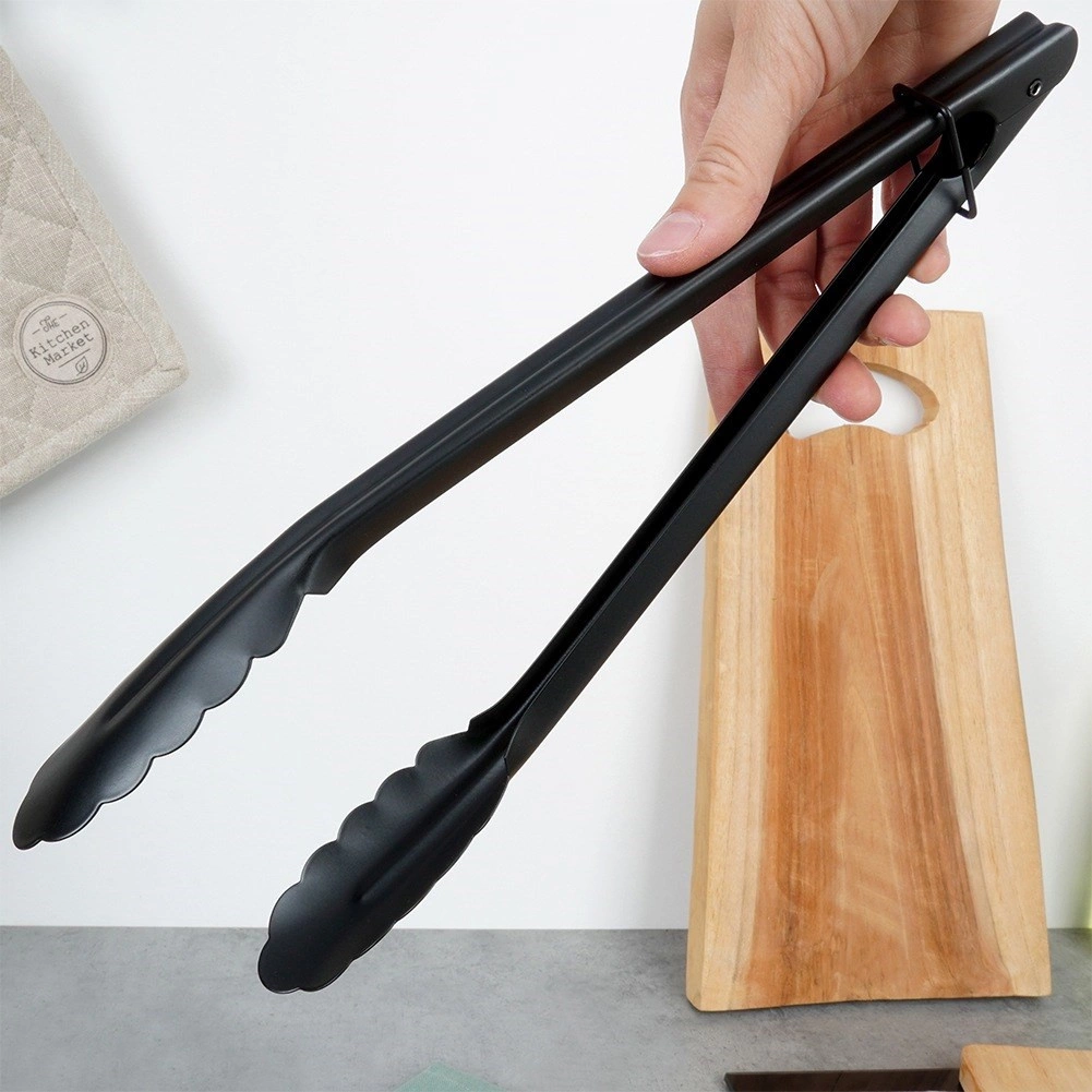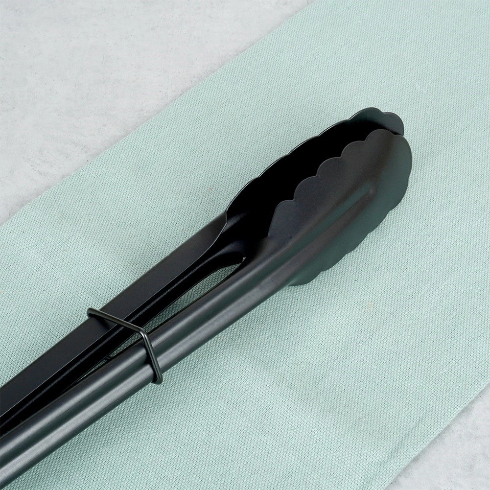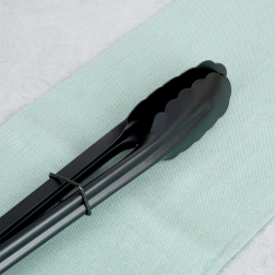 Univerzalna kuhinjska kliješta u modernoj crnoj izvedbi nezamjenjiv su pomagač pri prženju, pečenju i roštiljanju. Robusna konstrukcija od nehrđajućeg čelika osigurava dugotrajnost i higijenu, dok profilirani završeci pouzdano prihvaćaju meso, povrće i peciva bez klizanja.