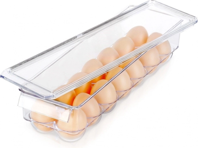 Ova izdržljiva i višekratna kutija za jaja dizajnirana je za sigurno i higijensko skladištenje do 14 jaja u hladnjaku. Prozirna izvedba osigurava trenutan uvid u količinu, poklopac štiti sadržaj i omogućuje čisto i organizirano okruženje u hladnjaku.